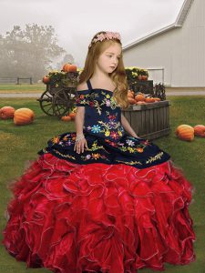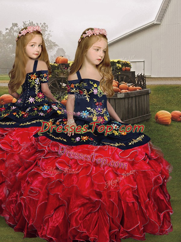 Straps Sleeveless Lace Up Little Girl Pageant Dress Red Organza