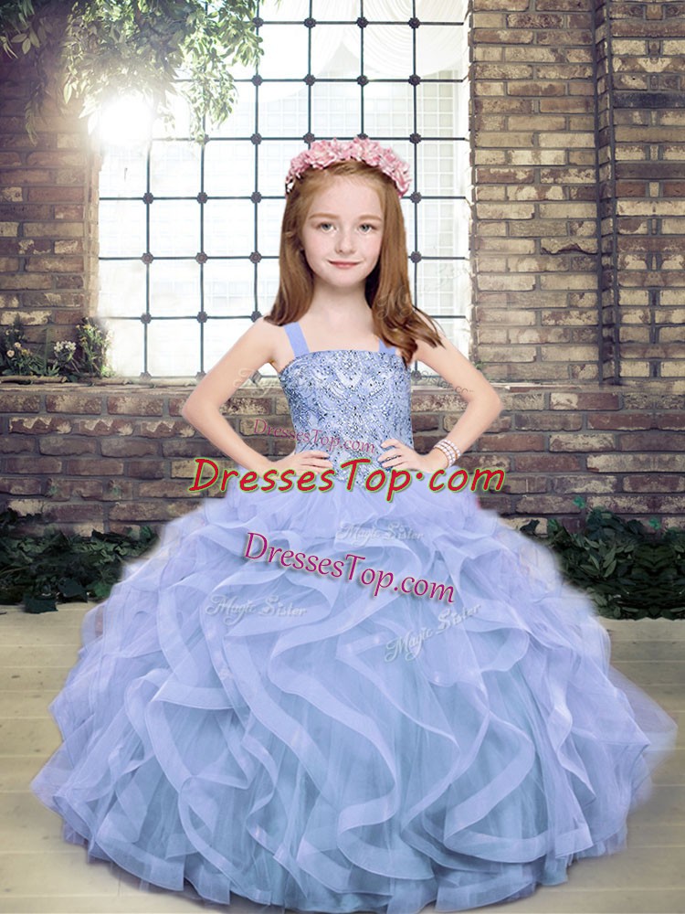 Straps Sleeveless Lace Up Little Girls Pageant Dress Wholesale Light Blue Tulle