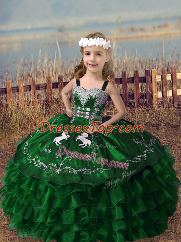 Straps Sleeveless Lace Up Little Girls Pageant Gowns Green Organza