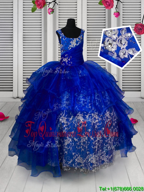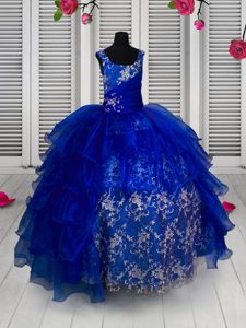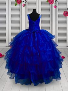 Straps Sleeveless Lace Up Pageant Dress for Teens Blue Organza