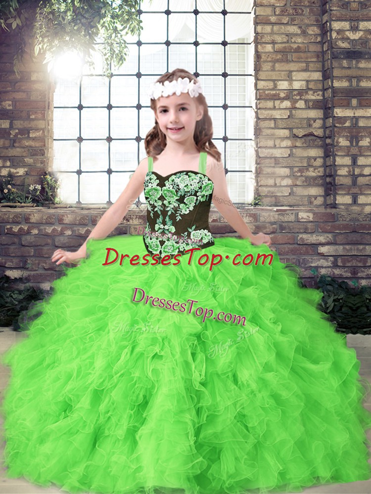 Straps Sleeveless Little Girls Pageant Dress Floor Length Embroidery and Ruffles Tulle