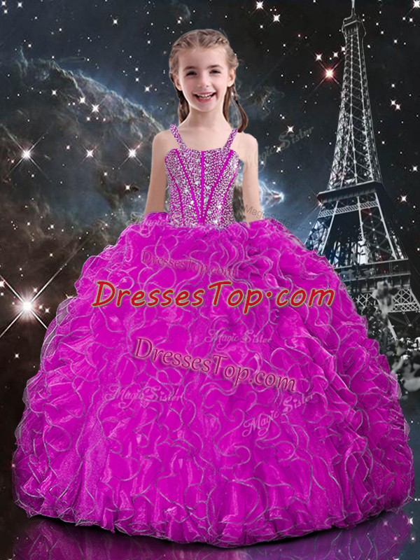 Straps Sleeveless Organza Kids Formal Wear Beading and Ruffles Lace Up