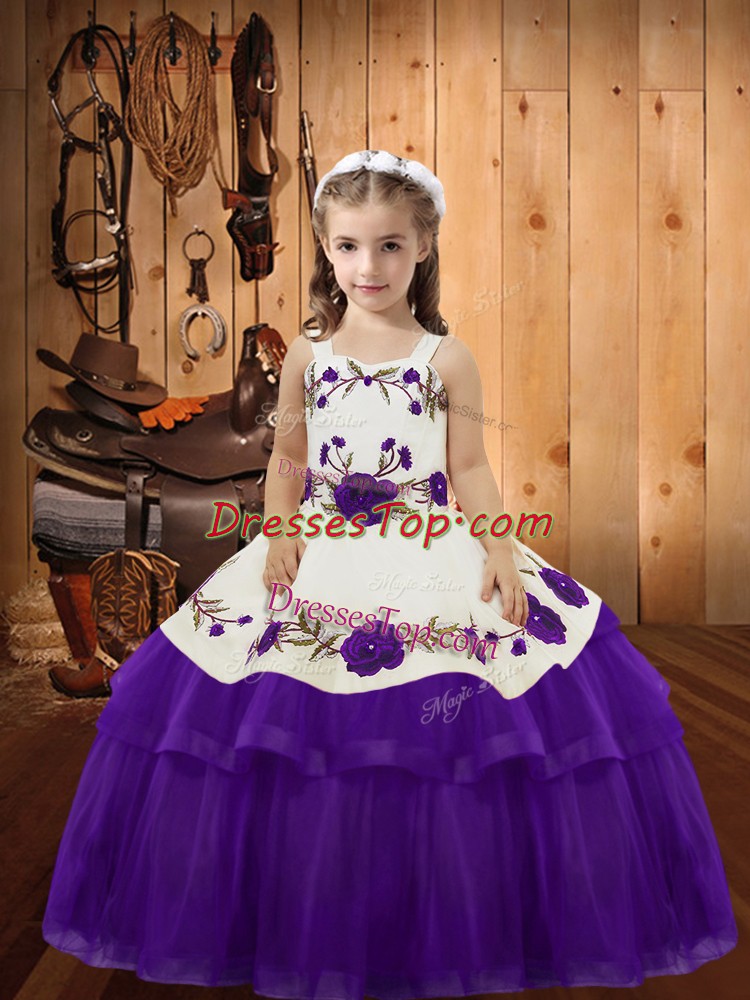 Straps Sleeveless Organza Kids Formal Wear Embroidery and Ruffled Layers Lace Up