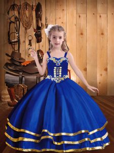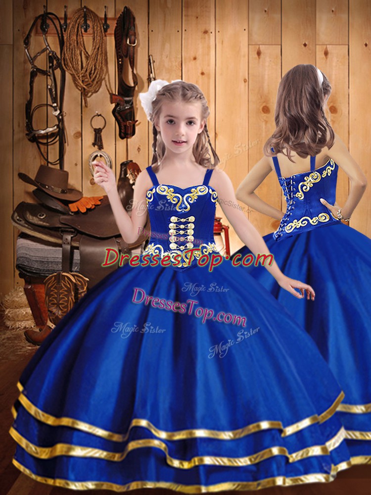 Straps Sleeveless Organza Little Girls Pageant Dress Wholesale Embroidery and Ruffled Layers Lace Up
