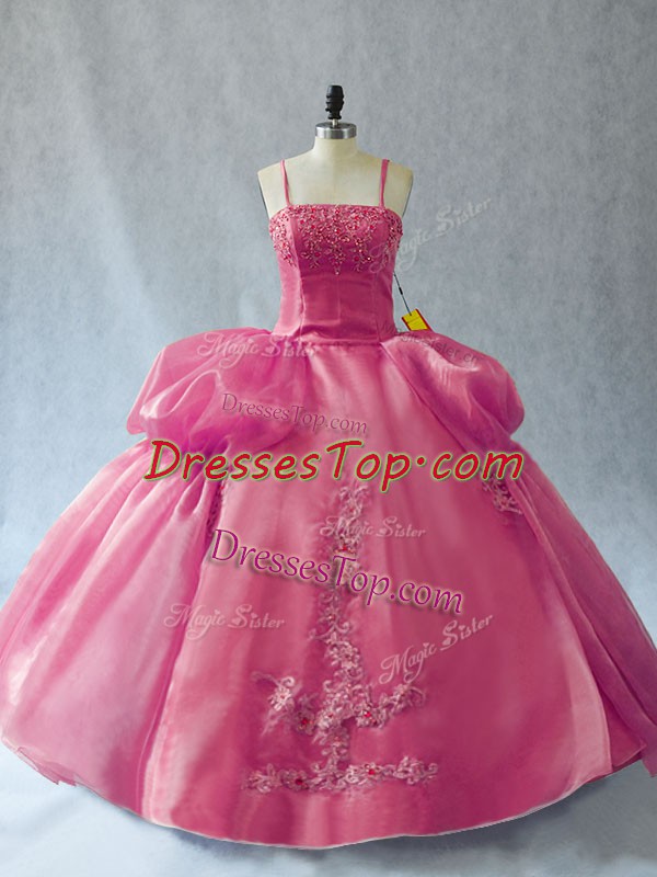 Straps Sleeveless Organza Quinceanera Gown Appliques Lace Up