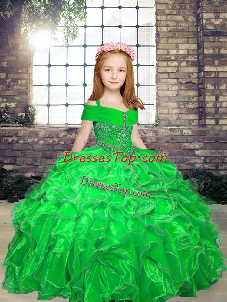 Straps Sleeveless Pageant Gowns For Girls Floor Length Beading and Ruffles Organza