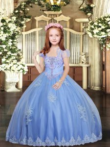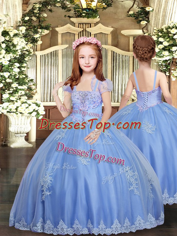Straps Sleeveless Tulle Kids Formal Wear Appliques Lace Up