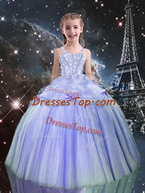 Straps Sleeveless Tulle Pageant Dress for Girls Beading Lace Up