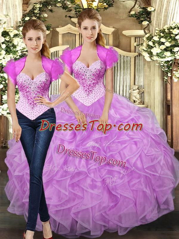 Straps Sleeveless Tulle Vestidos de Quinceanera Beading and Ruffles Lace Up