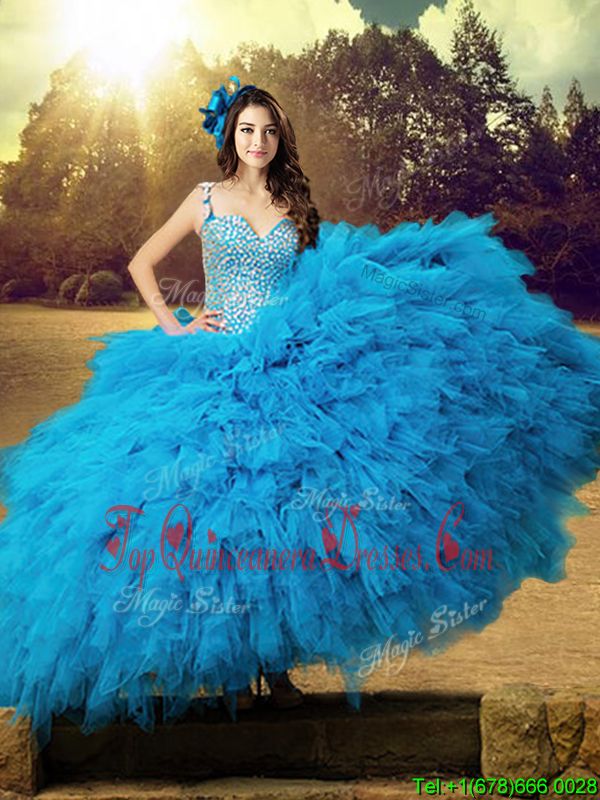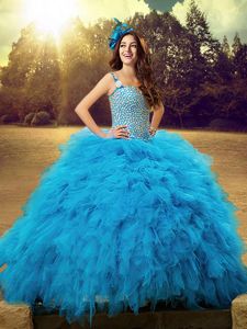 Straps Straps Baby Blue Sleeveless Tulle Lace Up Vestidos de Quinceanera for Military Ball and Sweet 16 and Quinceanera
