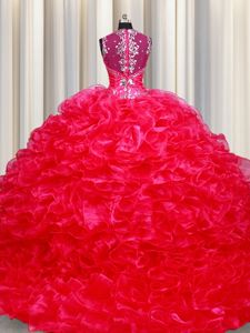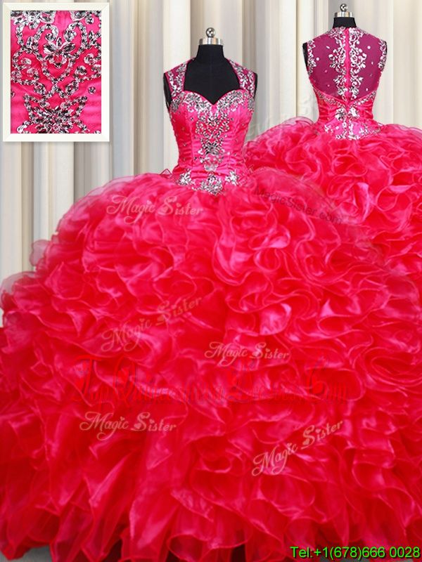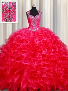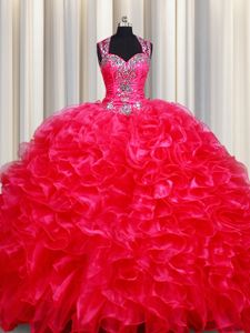 Straps Straps Beading and Ruffles Dama Dress Red Zipper Sleeveless Floor Length