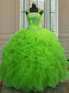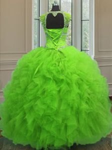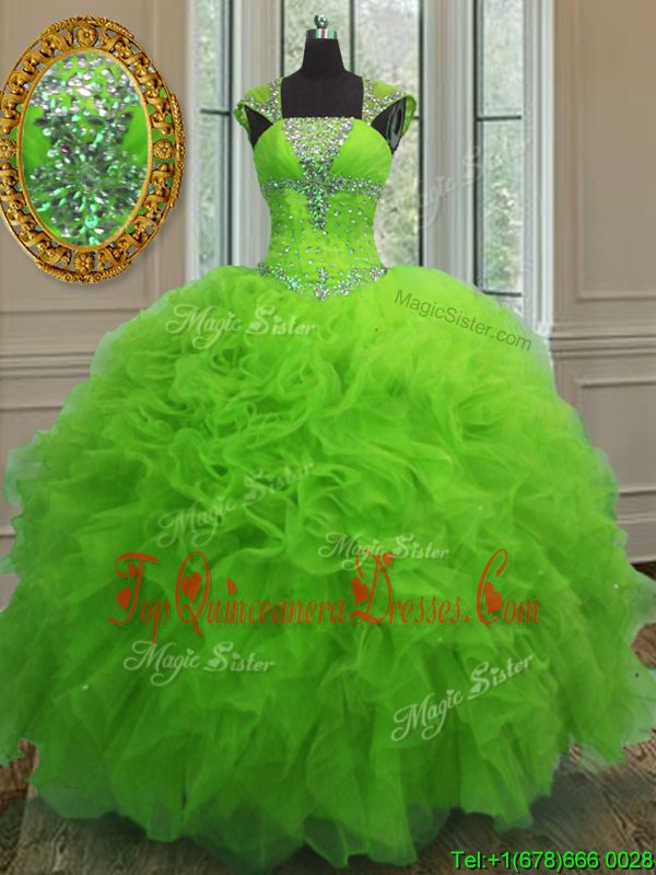 Straps Straps Cap Sleeves Beading and Ruffles and Sequins Lace Up 15th Birthday Dress