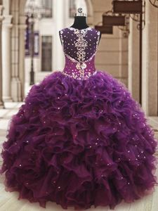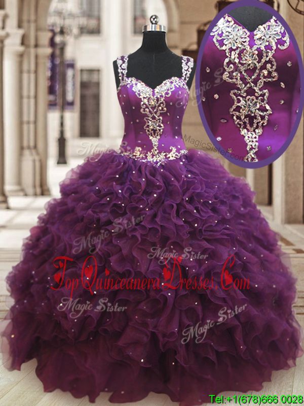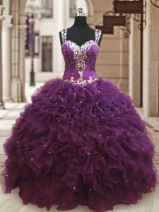 Straps Straps Floor Length Ball Gowns Sleeveless Dark Purple Vestidos de Quinceanera Zipper
