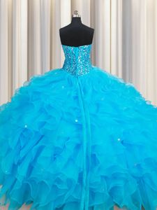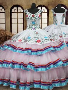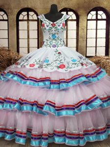 Straps Straps Organza and Taffeta Sleeveless Floor Length Quinceanera Dress and Embroidery and Ruffled Layers