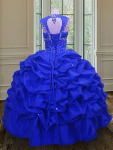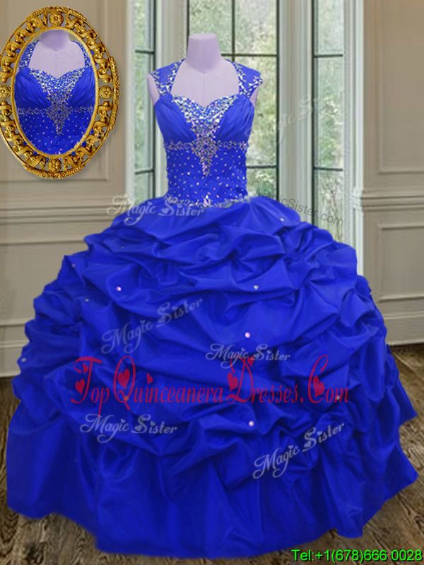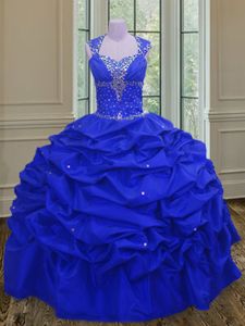 Straps Straps Taffeta Sleeveless Floor Length Vestidos de Quinceanera and Beading and Pick Ups