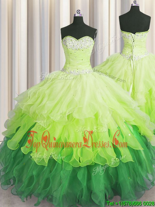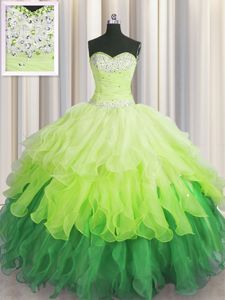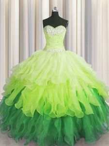 Stunning Beading and Ruffles and Ruffled Layers and Sequins Quinceanera Dresses Multi-color Lace Up Sleeveless Floor Length