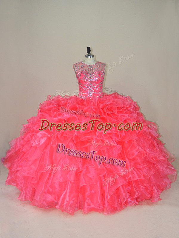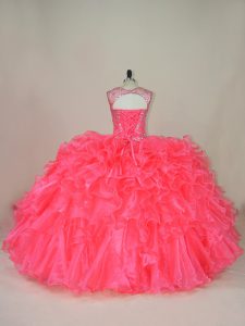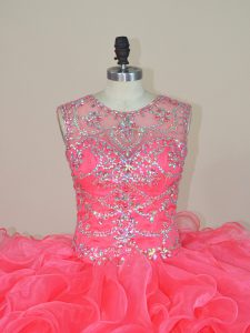 Stunning Beading and Ruffles Quinceanera Gown Pink Lace Up Sleeveless