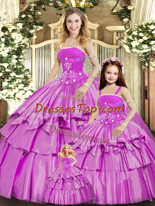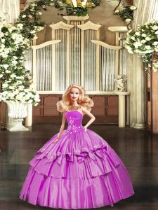 Stunning Floor Length Lace Up 15th Birthday Dress Lilac for Sweet 16 and Quinceanera with Beading and Ruffled Layers