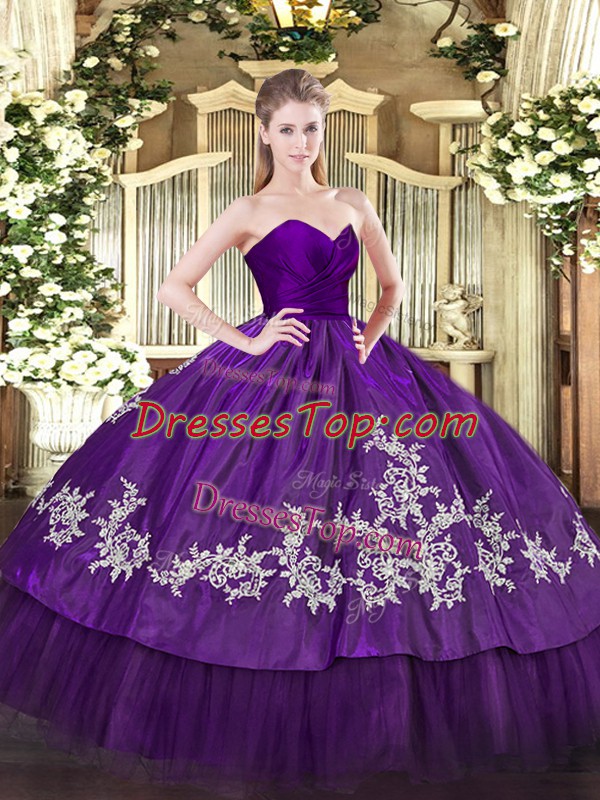 Stunning Floor Length Purple Quinceanera Dama Dress Sweetheart Sleeveless Zipper
