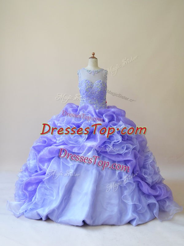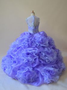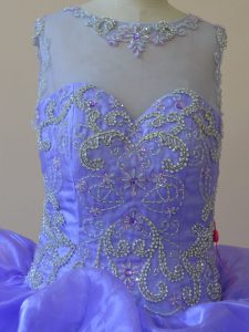Stunning Lavender Sleeveless Beading and Ruffles Zipper Ball Gown Prom Dress