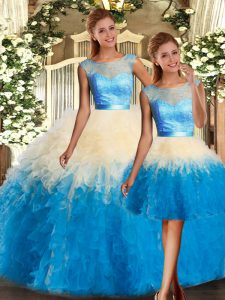 Stunning Multi-color Scoop Neckline Lace and Ruffles 15th Birthday Dress Sleeveless Backless
