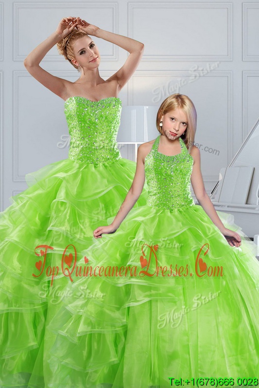 Custom Made Organza Lace Up Quinceanera Gown Sleeveless Floor Length Beading and Ruffled Layers