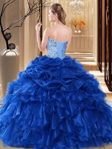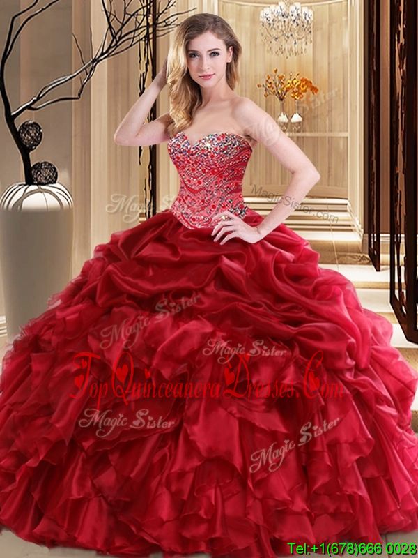 Stunning Red Organza Lace Up Vestidos de Damas Sleeveless Floor Length Beading and Pick Ups