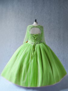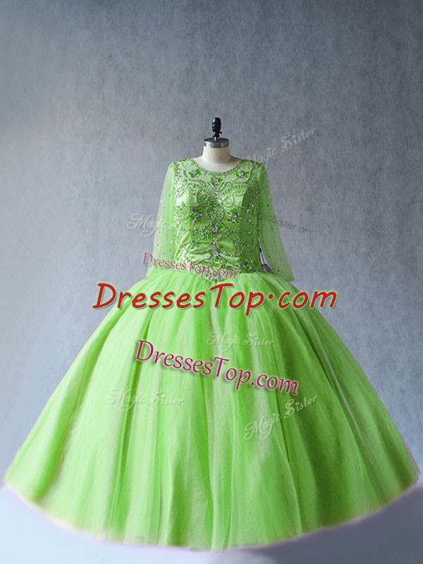 Stunning Scoop Long Sleeves Tulle Quinceanera Gown Beading Lace Up