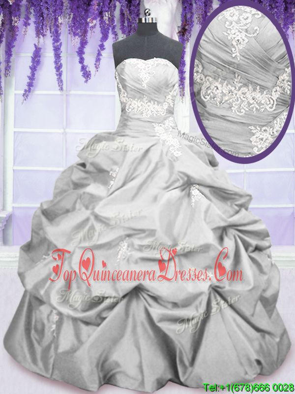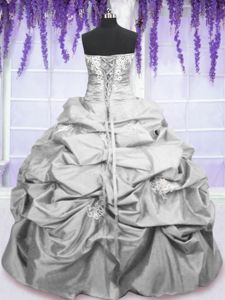 Stunning Silver Strapless Lace Up Embroidery and Pick Ups Quinceanera Dresses Sleeveless