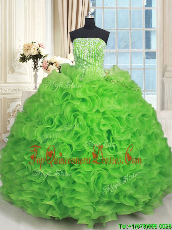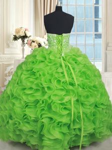 Stunning Sleeveless Organza Floor Length Lace Up Quinceanera Gown in for with Beading and Ruffles