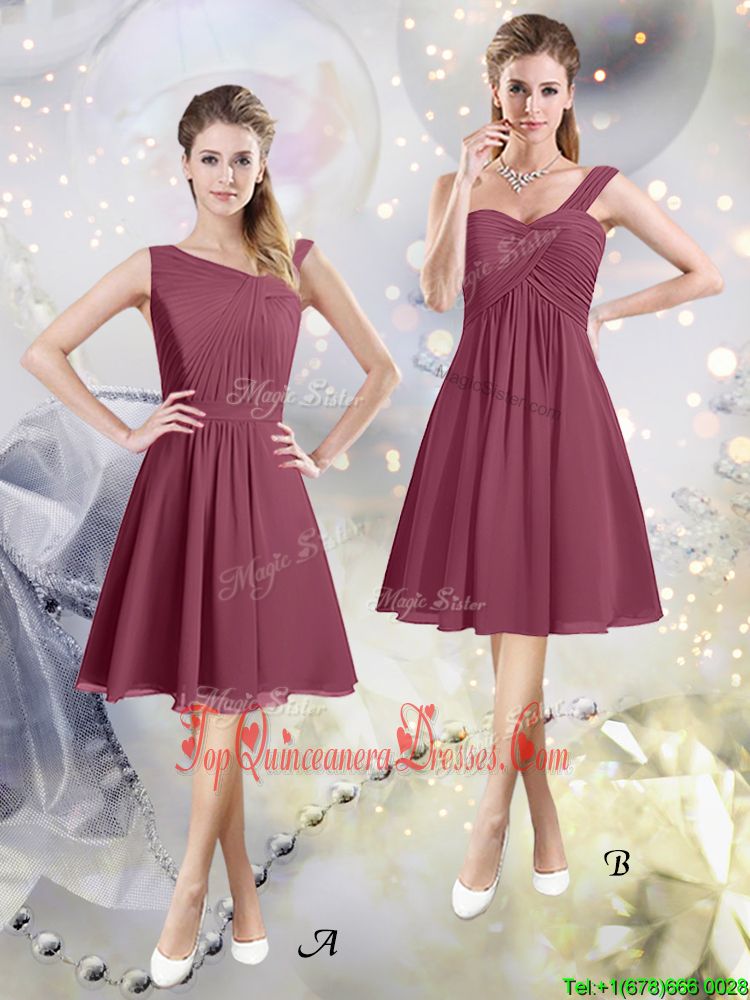 Stunning Sleeveless Zipper Knee Length Ruching Dama Dress for Quinceanera