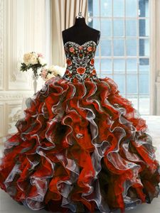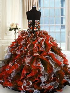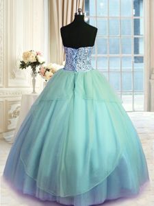 Stunning Three Piece Sleeveless Tulle Floor Length Lace Up Sweet 16 Dress in Blue for with Beading
