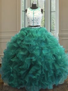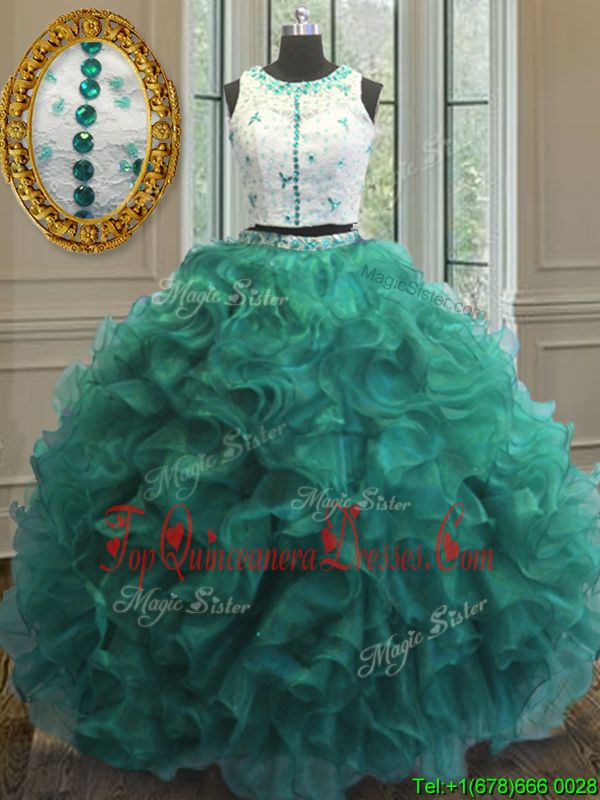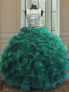 Stunning Turquoise Clasp Handle Scoop Appliques and Ruffles 15 Quinceanera Dress Organza Sleeveless