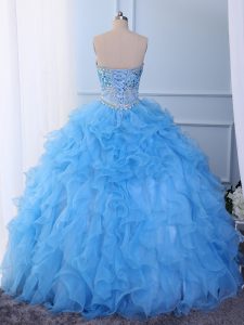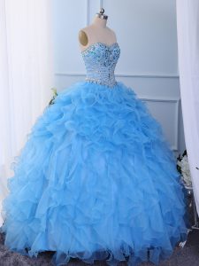 Stylish Baby Blue Lace Up Sweet 16 Dress Beading and Embroidery and Ruffled Layers Sleeveless Floor Length
