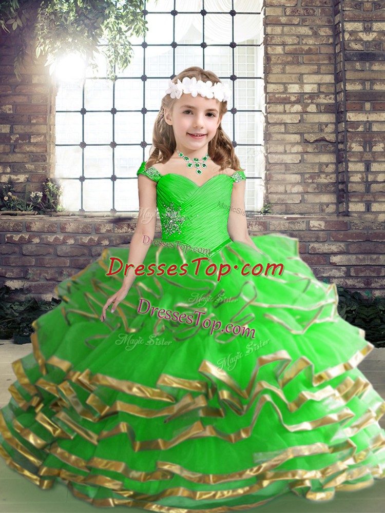 Stylish Ball Gowns Straps Sleeveless Tulle High Low Lace Up Beading and Ruching Little Girls Pageant Dress Wholesale