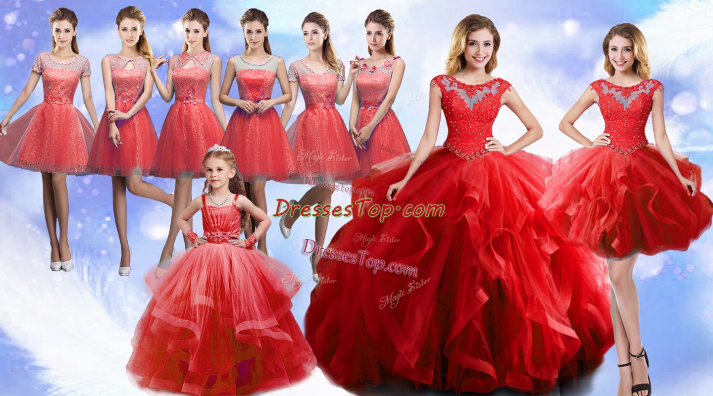 Stylish Beading and Ruffles Quinceanera Gown Wine Red Lace Up Sleeveless Floor Length