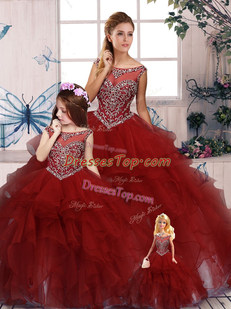 Stylish Burgundy Sleeveless Organza Zipper Vestidos de Quinceanera for Military Ball and Sweet 16 and Quinceanera
