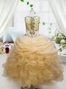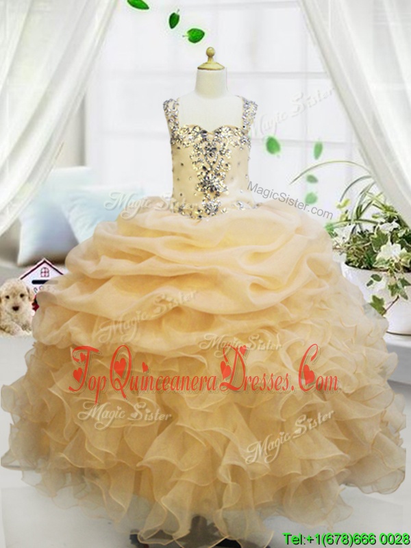 Stylish Champagne Ball Gowns Organza Straps Sleeveless Beading and Ruffles and Pick Ups Floor Length Zipper High School Pageant Dress