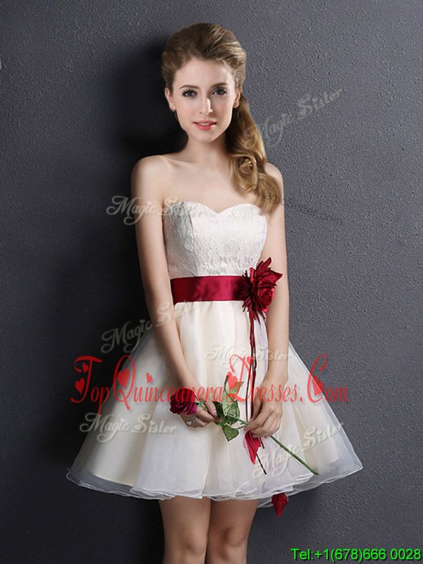 Stylish Champagne Lace Up Sweetheart Lace and Hand Made Flower Vestidos de Damas Organza Sleeveless
