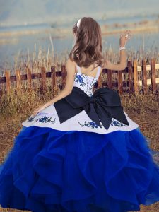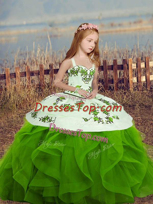 Stylish Floor Length Lace Up Kids Pageant Dress Green for Party and Sweet 16 and Wedding Party with Embroidery and Ruffles