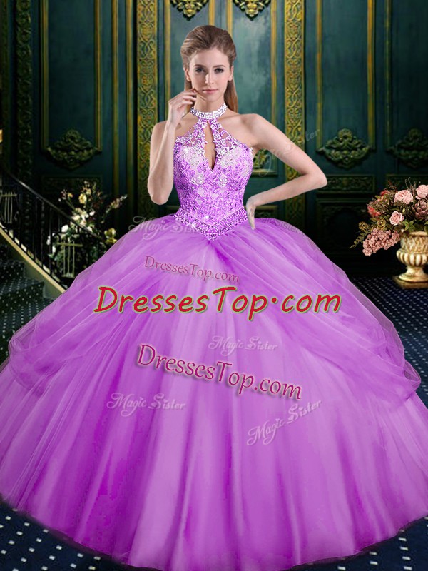 Stylish Floor Length Lace Up Sweet 16 Quinceanera Dress Lilac for Military Ball and Sweet 16 and Quinceanera with Beading and Pick Ups