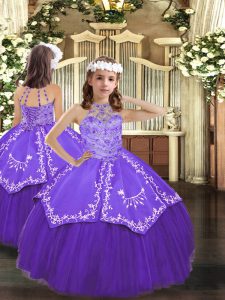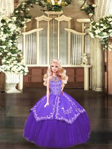 Stylish Floor Length Purple Sweet 16 Dress Satin and Tulle Sleeveless Beading and Embroidery