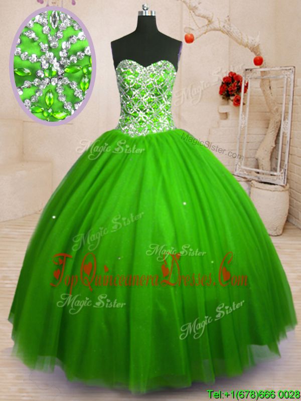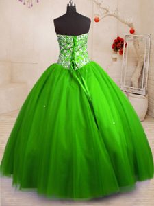 Stylish Floor Length Quince Ball Gowns Tulle Sleeveless Beading