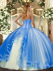Stylish Lilac Ball Gowns Sweetheart Sleeveless Tulle Floor Length Lace Up Beading and Ruffles 15 Quinceanera Dress