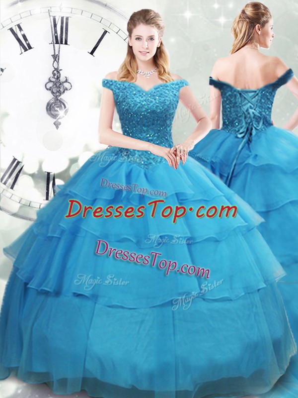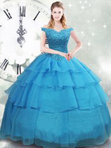 Stylish Organza Sleeveless 15 Quinceanera Dress Brush Train and Beading and Ruffled Layers