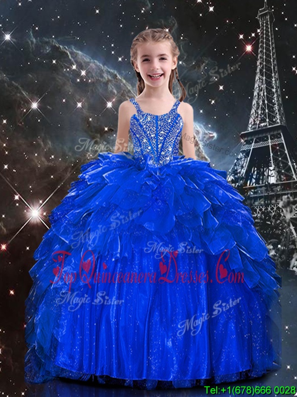 Stylish Organza Sleeveless Floor Length Glitz Pageant Dress and Beading and Ruffles