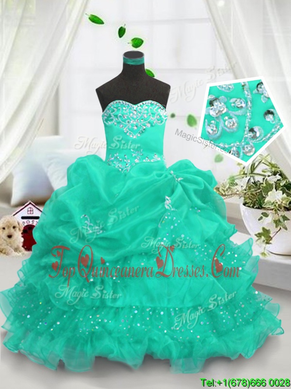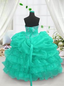 Stylish Organza Sweetheart Sleeveless Lace Up Beading and Ruffled Layers and Pick Ups Child Pageant Dress in Turquoise
