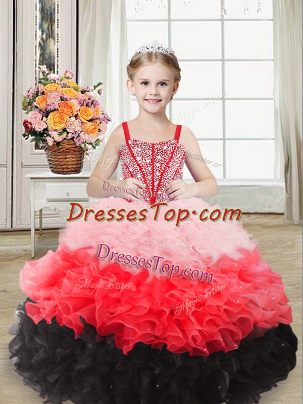 Stylish Sleeveless Beading and Ruffles Lace Up Pageant Gowns For Girls