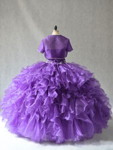 Stylish Sleeveless Floor Length Beading and Ruffles Lace Up 15th Birthday Dress with Purple