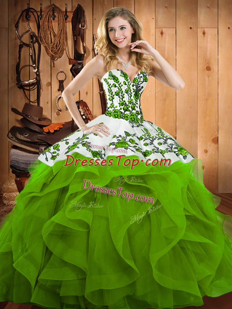 Stylish Sleeveless Floor Length Embroidery and Ruffles Lace Up Quinceanera Dresses